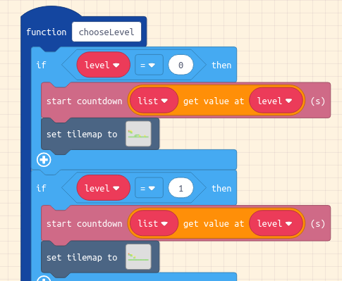 If you haven’t already drag in from the Info section a block that reads countdown into the createLevels function for each level.